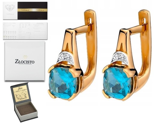 RÓŻOWE ZŁOTO KOLCZYKI Z TOPAZEM I DIAMENTAMI SKLEP