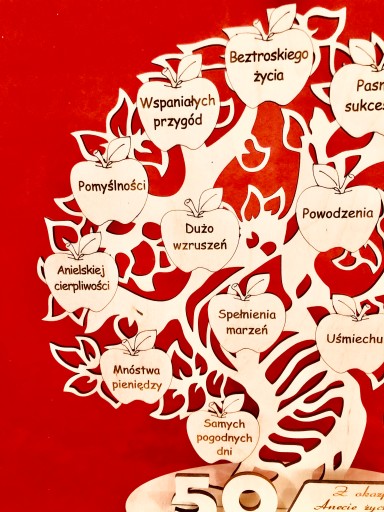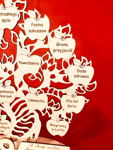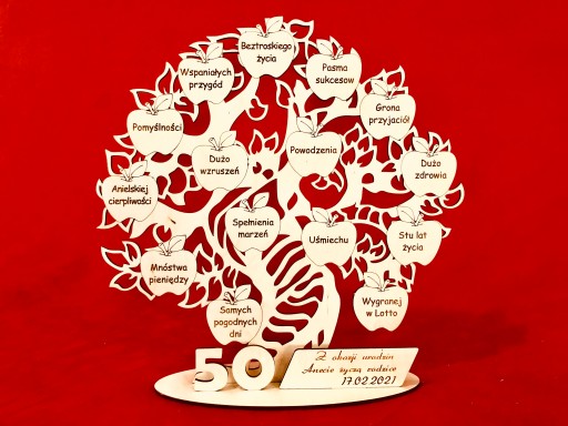 Misternie wycięte ze sklejki i grawerowane profesjonalnym laserem drzewko z życzeniami dla solenizanta.