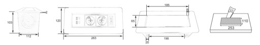 Gniazdo blatowe otwierane ERGOLINE SPS-O24S V2 (srebrny)Mediaport Spacetronik ERGOLINE SPS-O24S V2 to nowoczesne rozwiązanie, które znajduje zastosowanie w sklepach, salonach sprzedaży, salach konferencyjnych, biurach, a także w domu. Obróć, a gniazda płynnie się odkryją. Wykonany z aluminium i wysokiej jakości komponentów. Produkt jest przeznaczony do montażu wewnątrz pomieszczeń w biurkach, blatach i stołach, zarówno w pozycji pionowej jak i poziomej, zapewniając dostęp do gniazd. Mediaport został wyposażony w 2 gniazda 110-250 V (typ Schuko), przycisk włącz/wyłącz oraz podwójną ładowarkę USB.