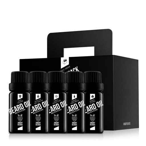 - Wszystkich 5 zapachów oryginalnych olejków Angry Beards w jednym opakowaniu.