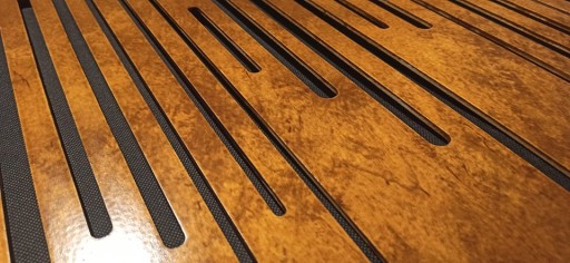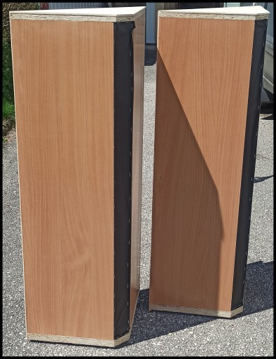 Z Tyłu konstrukcja otwarta dla lepszego pochłaniania najniższych częstotliwości. Z przodu i na szczycie sklejka ze wzorem zaprojektowanym i wyciętym na CNC.