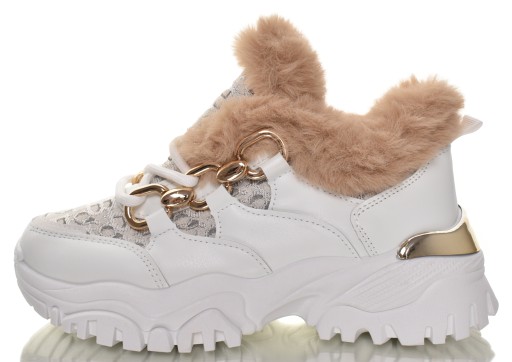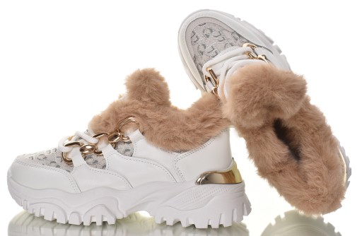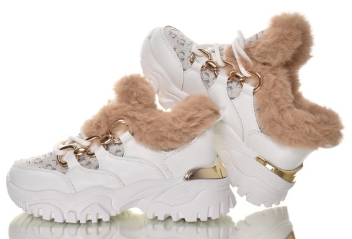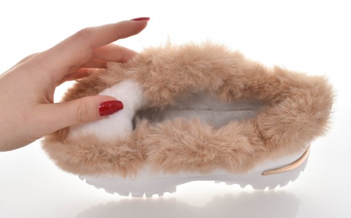 Wnętrze buta ocieplane jest futerkiem, ciepłe i przyjemne w dotyku.