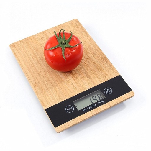 Elektroniczna waga kuchenna o atrakcyjnym wyglądzie. Nowoczesny, przyciągający uwagę design sprawia, iż idealnie podkreśla ona piękno każdej kuchni. Podstawka na produkty wykonana została z odpornego na uszkodzenia i łatwego do czyszczenia drewna bambusowego. Waga została wyposażona w funkcję automatycznej kalibracji oraz odliczania wagi pojemnika (tarowanie). W celu oszczędności baterii urządzenie automatycznie się wyłącza kiedy nie jest użytkowane.