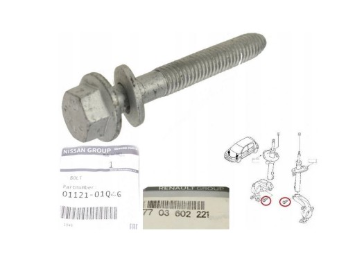 Nowa oryginalna Renault-Nissan śruba do mocowania amortyzatora przy zwrotnicy.