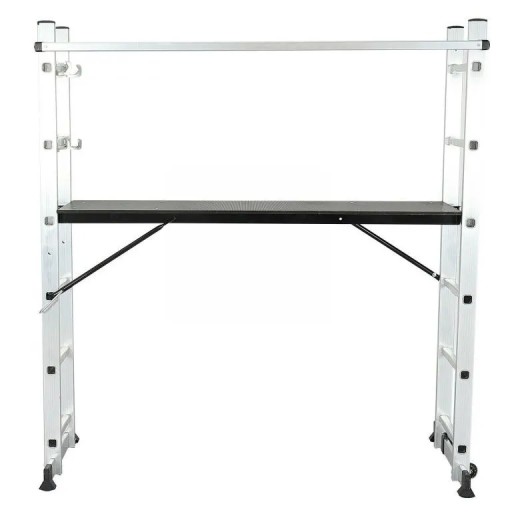 Dla każdego majsterkowicza to świetna alternatywa dla wolnostojących drabin. Dzięki łatwo regulowanej wysokości może służyć również jako stół roboczy. Dwie drabiny tworzące boki platformy roboczej można zdemontować i wykorzystać jako oddzielne drabiny. To sprawia, że przechowywanie i transport są bardzo wszechstronne. Posiada kółka z regulowanymi podporami hamulca, co oznacza, że można je przesuwać na miejsce i blokować. Ten system rusztowań to praktyczny i solidny wybór dla każdego projektu naziemnego. Kolory mogą się nieznacznie różnić od przedstawionych na ilustracji.