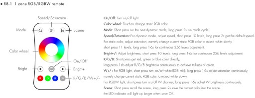 - Włączenie / Wyłączanie, Sterowanie kolorami RGB/RGBW