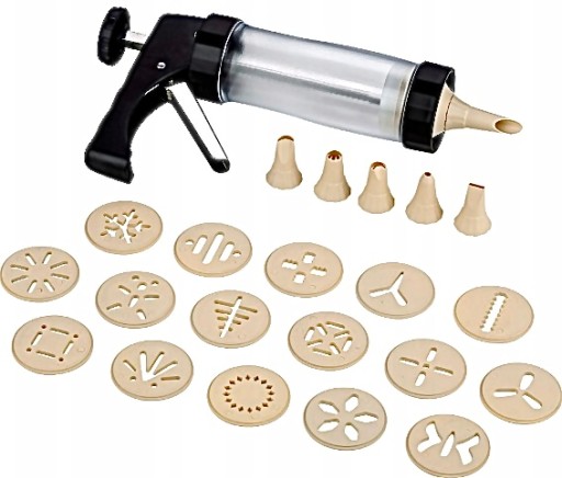 Posiada 16 nakładek do wyrabiania pięknych ciastek, dekorowania ciast oraz tortów. Dodatkowo posiada 7 końcówek do kremów i bitej śmietany.