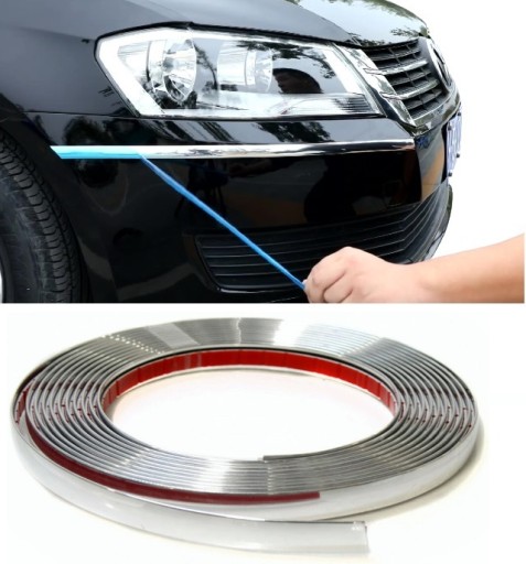 Listwa samoprzylepna wykonana z wysokiej jakości gumy pokrytej warstwą chromu. Odporna na warunki atmosferyczne. Sprawdzi się wewnątrz i na zewnątrz auta - dodatkowo posiada wiele innych zastosowań. Listwy są elastyczne, po podgrzaniu można profilować przy zagięciach.