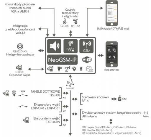 ✅ centrala hybrydowa: przewodowa + system bezprzewodowy Aero,