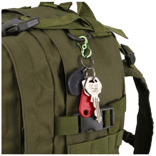 Doskonałe do podczepiania części oporządzenia, zawieszeń taktycznych lub jako brelok.
