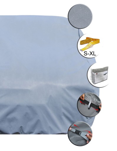 Pokrowiec wykończony został mocną gumą ściągającą, która trzyma plandekę po całym obwodzie auta.
