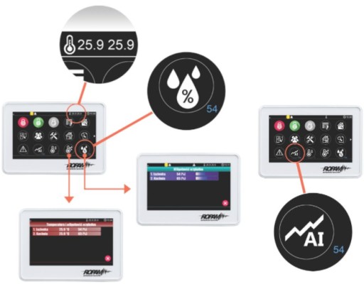 Urządzenie jest wyposażone w termostat. W oparciu o ustalone harmonogramy czasowo-temperaturowe, urządzenie steruje klimatyzacją i ogrzewaniem obiektu. Dzięki temu możemy utrzymać optymalną temperaturę pomieszczeń, a także zaoszczędzić energię.