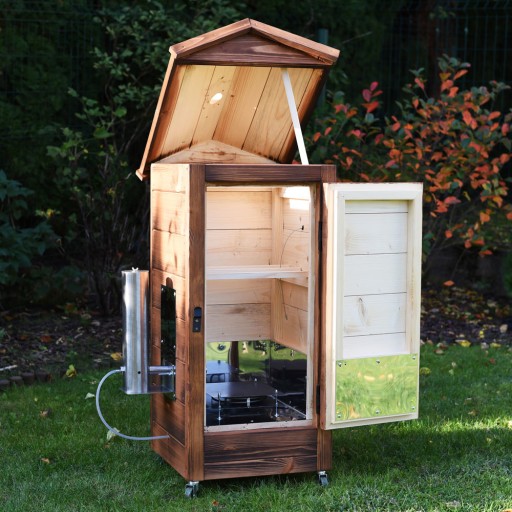 - Atut naszej wędzarni to niewątpliwie możliwość transportowania jej ze względu na jej niską wagę oraz niewielki gabaryt. Dodatkowo wędzarnię wyposażyliśmy w kółka aby ułatwić jej przestawienie w ogrodzie