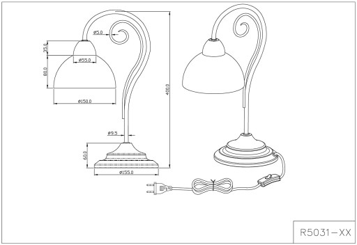 Lampka stołowa Trio Lighting Reality Country bez klosza (5741)