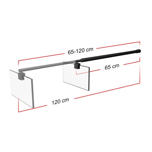 Ścianka posiada drążek stabilizujący o regulowanej długości w zakresie ↔ 65-120 cm, pozwalający w bezpieczny i stabilny ✔️ sposób zamontować ściankę do przeciwległej ściany. Regulacja szerokości wnęki montażowej (brodzika prysznicowego) jest możliwe poprzez rozłożenie lub złożenie drążka. Drążek można z łatwością skrócić lub wydłużyć dopasowując jego długość do wnęki lub brodzika bez konieczności jego docinania❗️.