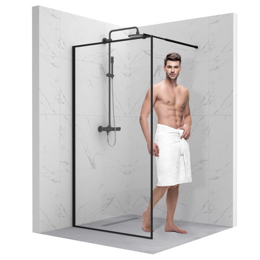 ŚCIANKA SZYBA PRYSZNICOWA WALK-IN PROFIL BLACK 120CM SZKŁO 8MM