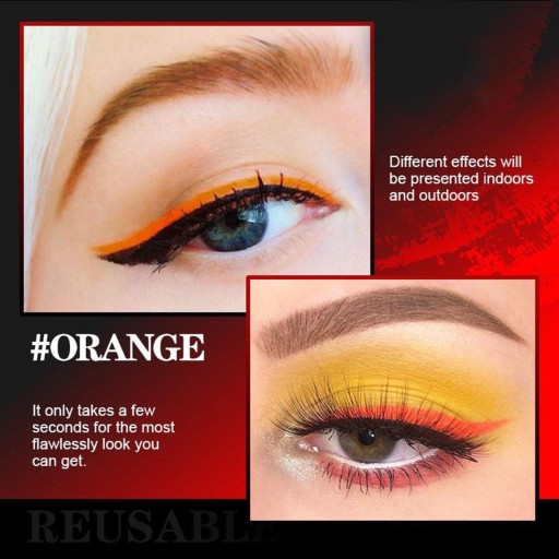 Eyeliner wielokrotnego użytku posiada oka , dzięki czemu po umieszczeniu ich we właściwym miejscu na oczach można je łatwo przykleić, nie martwiąc się o przekrzywienie