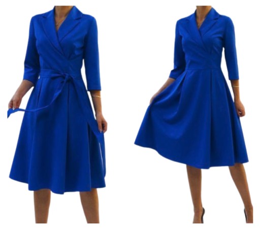 Elegancka sukienka zaprojektowana i uszyta w Polsce dostępna w rozmiarach od 34 do 54 .