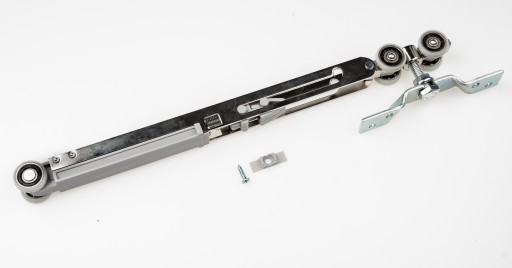- możliwość użycia dwóch domykaczy ( po jednym do każdego z wózków) co zapewnia łagodne zatrzymywanie skrzydła w trakcie pracy systemu w obu kierunkach ( otwieranie, zamykanie)