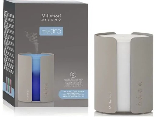 Elegancki i nowoczesny odświeżacz ultradźwiękowy Millefiori Milano. Tworzy odprężającą atmosferę przy pomocy zapachu, lekkiej mgiełki i delikatnego kolorowego światła.