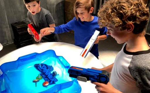 Wystrzel za pomocą pistoletu spiner wprost na arenę, Twój przeciwnik niech zrobi to samo. Rywalizacja poprzez wystrzelenie z blastera pocisku zapewni nieprzewidywalną i niepowtarzalną rozgrywkę metalowych spinnerów. Nie próbuj ich chwytać, jak się szybko obracają! To naprawdę może zaboleć!