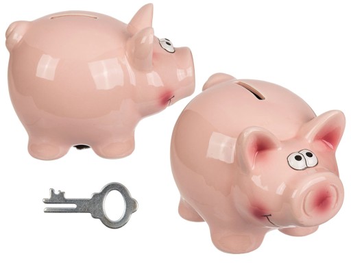 Bardzo pogodna i klasyczna skarbonka w postaci różowej, wesołej ŚWINKI. Ten radosny prosiaczek chętnie zaopiekuje się Twoimi oszczędnościami.