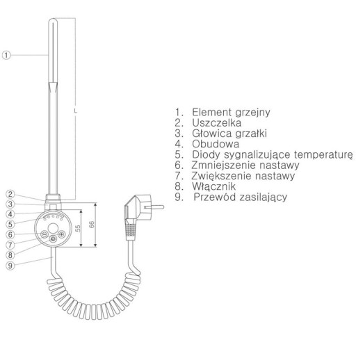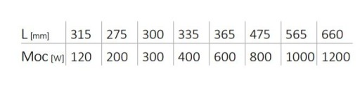 Długość grzałki zależy od jej mocy - wymiary podane w tabeli poniżej -