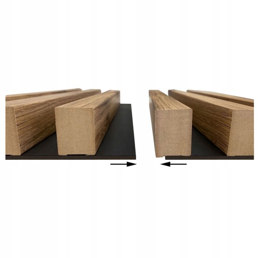 Płytę z lamelami wystarczy połączyć ze sobą jak na grafice obok i przymocować na wkręty do ściany lub przekleić na klej.