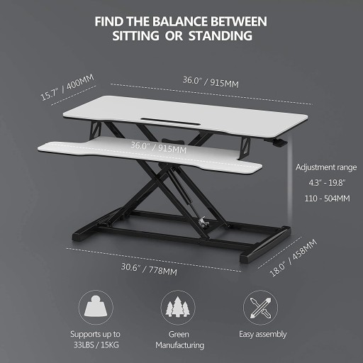 Nasz konwerter stołowego biurka ma regulowaną wysokość od 11,5 do 50,4 cm, dzięki czemu możesz pracować na przemian stojąc lub siedząc. Zapewnia to lepszą postawę i pomaga złagodzić ból szyi, pleców i stawów spowodowany siedzeniem przed komputerem.