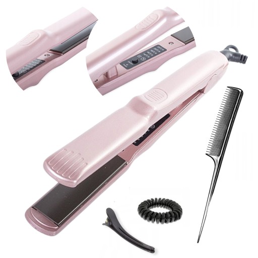 Błyskawicznie się nagrzewa, posiada pięciostopniową regulację temperatury w zakresie 140 - 220 stopni.