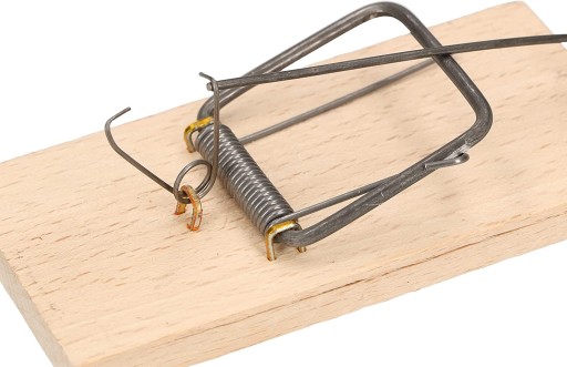 - Aby uzbroić pułapkę należy odgiąć do tyłu sprężynę, zablokować ją drucikiem i finalnie ustawić ją w miejscu, gdzie występują gryzonie.