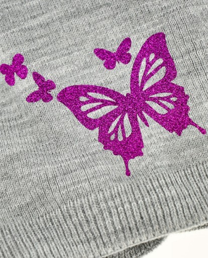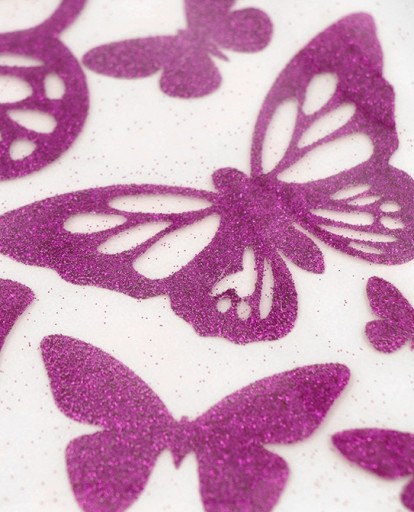 Prezentowany model to brokatowe motylki, w wyróżniającej się purpurowej barwie. Jeżeli Wasze pociechy gustują w podobnych barwach lub wykazują zainteresowanie światem owadów w tym motyli to jest to obowiązkowa pozycja na Waszych ubrankach. Taka barwa w połączeniu z mieniącym się brokatem z pewnością zostanie zauważona przez równieśników w szkole, jak również np. przez kierowców podczas przechodzenia przez pasy co nieznacznie wpłynie na bezpieczeństwo Waszych pociech.