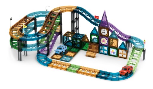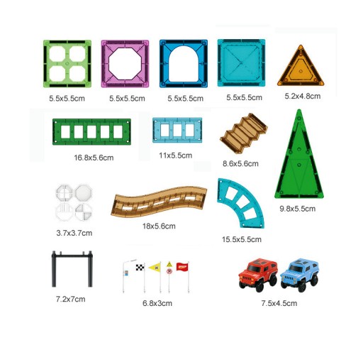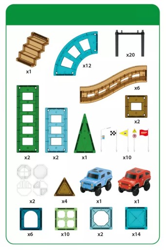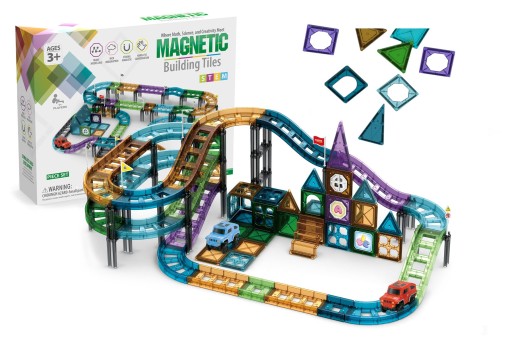 Zestaw charakteryzuje się łatwością łączenia poszczególnych elementów w dowolny sposób oraz pod różnymi kątami. Na bokach każdego klocka są wbudowane mocne magnesy neodymowe, którą z dużą siłą łączą ze sobą kolejne elementy tworząc przeróżne figury. Klocki można układać płasko tworząc tory, wężyki itp. oraz przestrzennie budując przeróżne figury trójwymiarowe. W ten sposób dzieci będą mogły pobudzać swoją wyobraźnię przestrzenną.