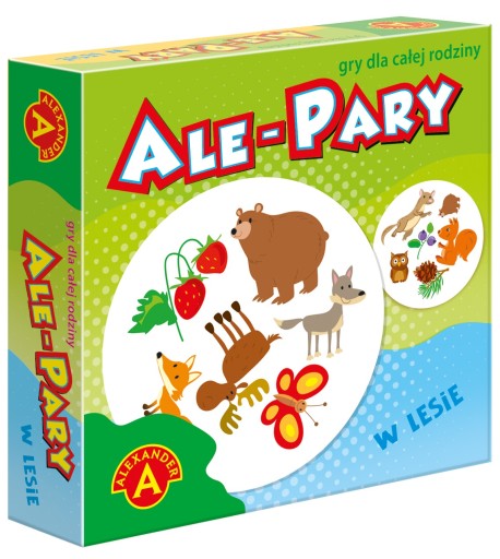 Ale Pary – W Lesie to szybka, prosta gra karciana w której wygrywa ten kto wykaże się największą spostrzegawczością. W opakowaniu znajdziemy zestaw 31 kart z 6 obrazkami przedstawiającymi roślinki i zwierzątka, które możemy spotkać w lesie. Dwie dowolne karty zawsze mają po jednym wspólnym obrazku, ale żeby nie było zbyt łatwo, obrazki te często mają różną wielkość.