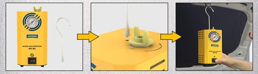 Profesjonalny automatyczny tester szczelności rur, węży, złączy, instalacji przy użyciu generatora dymu. Pomoże nam to w szybkim i dokładnym zlokalizowaniu wycieków w układach rurowych w ciągu kilku minut. Możliwość wykorzystania urządzenia przy testach układu dolotowego, test turbosprężarki, test układu wydechowego, test układu chłodzenia, test uszczelnienia samochodu, test układu zbiornika paliwa, test różnych złączek rurowych.