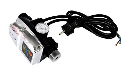 - Sterownik pracy pompy, który automatycznie włącza lub wyłącza pompę w zależności od wysokości ciśnienia w instalacji
