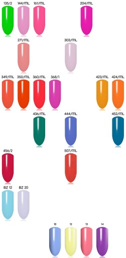 - Nałóż cienką warstwę wybranego koloru i utwardź w lampie LED lub UV/LED (czynność można powtórzyć w razie potrzeby. Pamiętaj, aby nakładać bardzo cienkie warstwy ze względu na mocną pigmentację kolorów).