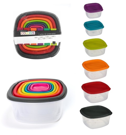 Komplet 7 pojemników do przechowywania żywności, które doskonale sprawdzą się w domu, a także w pracy bądź podróży. Pojemniki na żywność ułatwią zachowanie porządku w lodówce i w zamrażarce. Posłużyć mogą także jako organizery do szuflady. Przezroczyste tworzywo umożliwia szybki podgląd zawartości bez konieczności otwierania pojemników. Wykorzystane materiały nie zawierają szkodliwych substancji BPA, co sprawia, że nadają się do kontaktu z żywnością. Pojemniki są odpowiednie do stosowania w mikrofalówce, można je schować jeden w drugi, są lekkie i estetycznie wykonane. Nie są przeznaczone do mycia w zmywarce.