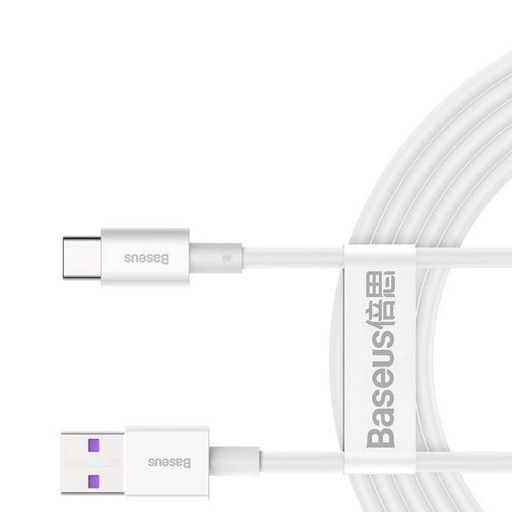 Kabel USB typ-C 6A o długości 2m - przewód służy do szybkiego ładowania i transmisji danych w urządzeniach z gniazdem type-C, posiadający wtyk USB z jednej strony i wtyk USB-C z drugiej strony (biały)