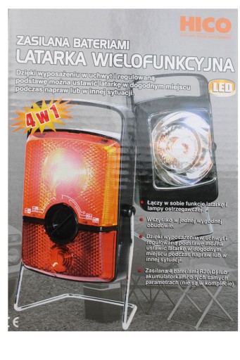 4-FUNKCYJNA LAMPA LED ( MOŻE BYĆ STOSOWANA JAKO LATARKA ORAZ JAKO LAMPA OSTRZEGAWCZA ) W ZALEŻNOŚCI OD SYTUACJI. WYPOSAŻONA JEST W WYGODNY UCHWYT ORAZ REGULOWANĄ PODSTAWĘ DZIĘKI KTÓREJ MOŻEMY USTAWIĆ LAMPĘ W ODPOWIEDNIM MIEJSCU PODCZAS AWARII LUB W ZUPEŁNIE INNEJ SYTUACJI .