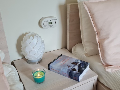 Dzięki specjalnie zaprojektowanej obudowie oprócz montażu na ścianie czujnik może być także postawiony na płaskiej powierzchni np. na szafce nocnej w pobliżu łóżka. Po 10 latach od aktywacji zasilania czujnik przypomni o konieczności wymiany urządzenia.