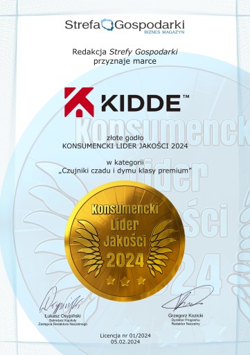 - Sensor: Opatentowany elektrochemiczny sensor CO firmy KIDDE