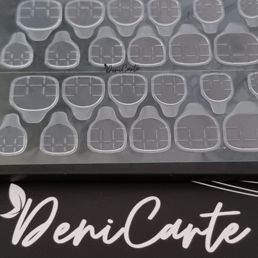 Arkusz zawiera 24 sztuki dwustronnych bezbarwnych naklejek w 6 rozmiarach. Żelowy klej do paznokci w formie naklejki na paznokcie idealnie zastąpi zwykły klej do sztucznych paznokci. Łatwa aplikacja pozwoli na wykonanie pięknego manicure w kilka chwil. Żelowy klej jest delikatny dla płytki.
