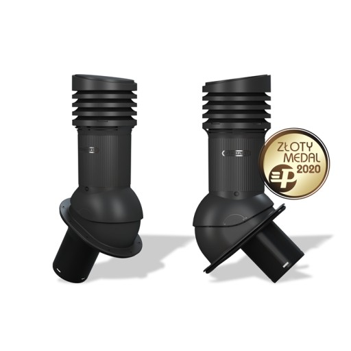 NORMAL EVO 125 - Kompletny kominek wentylacyjny z profilowanym przejściem dachowym, montowany bezpośrednio na pokrycia blaszane. Specjalne kanały odprowadzają skropliny (kondensat) na pokrycie dachowe.