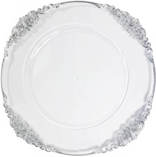 PLASTIKOWY PODTALERZ TRANSPARENTNY ZE SREBRNYM RANTEM