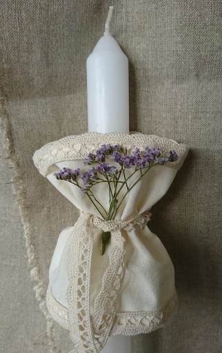 Ręcznie wykonana, przepiękna klasyczna ozdoba (profitka) do gromnicy, świecy komunijnej lub świecy do chrztu.
