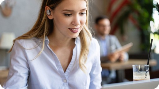 Aby nie tracić kontaktu z otoczeniem, możesz używać tylko jednej wkładki dousznej. Gdy umieścisz jedną z wkładek w futerale ładującym, druga automatycznie przejmie funkcje sterujące urządzenia głównego: odtwarzanie i wstrzymywanie odtwarzania, obsługę połączeń i inteligentnego asystenta.