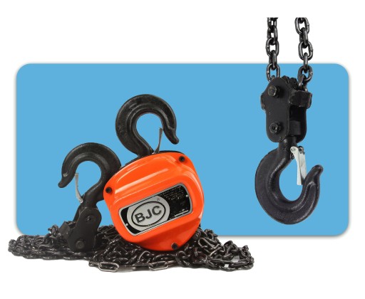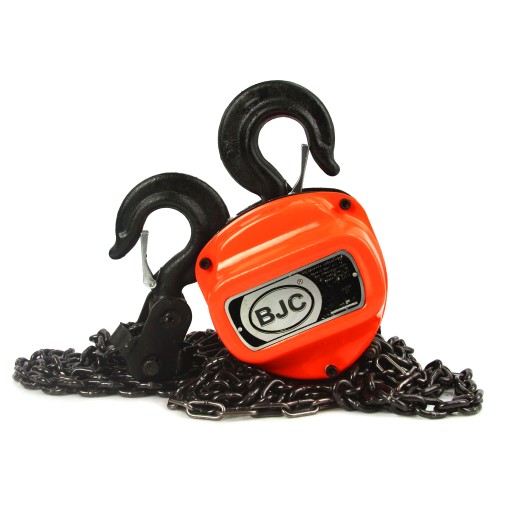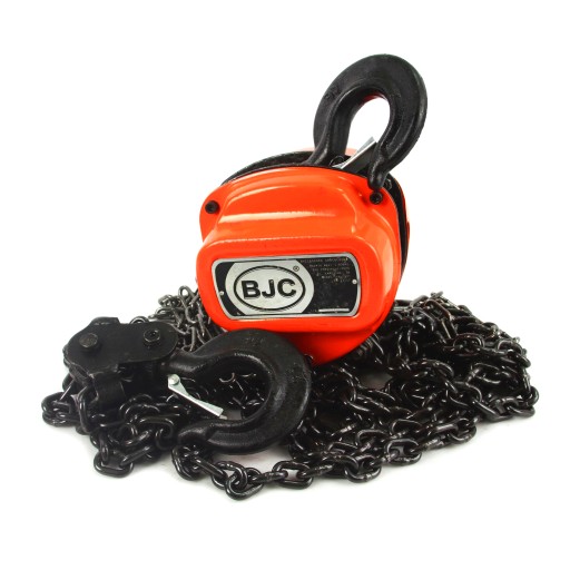 Wyciągarka łańcuchowa marki BJC posiada napęd ręczny i przekładnię, która pozwala na podniesienie ciężaru do 1000 kg. Łańcuch wykonany z wysokiej jakości stali. Ogniwa łączone metodą zgrzewania oporowo-iskrowego, co gwarantuje odpowiednią jakość i wytrzymałość ogniwa. Wyciągarka wyposażona jest w bezpieczne haki posiadające blokadę uniemożliwiającą wypięcie się ładunku.