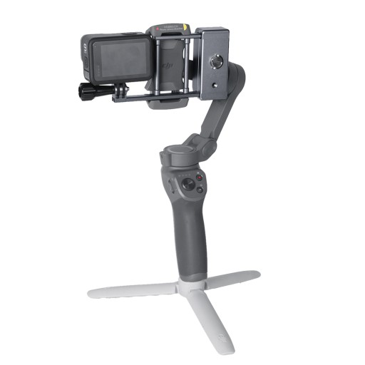 Adapter umożliwi zastosowanie stabilizatorów przeznaczonych do telefonów. Dzięki temu nie będziemy musieli nabyć dedykowanego, kolejnego gimbala, a bezproblemowo użyjemy tego, który używamy z naszym telefonem.