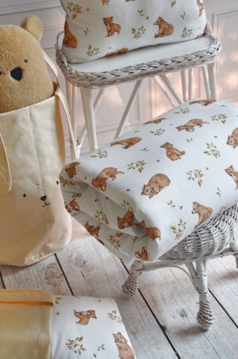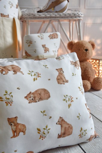 Druga strona wykonana z mięciutkiej pikowanej tkaniny velvet. Podusia wypełniona w środku lekką, antyalergiczną włókniną silikonową przyszytą do wewnątrz, dzięki czemu nie przemieszcza się w trakcie użytkowania.